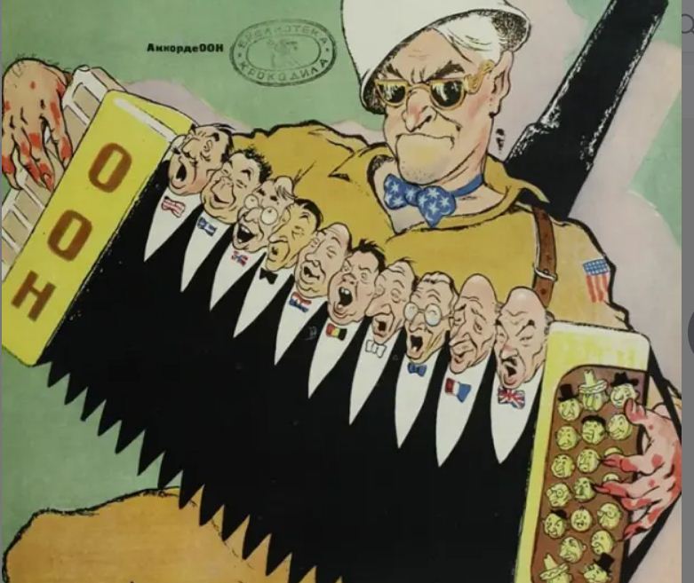 ООН – Организация Объединённых Наций. Не верю! НЕТ там никаких ОБЪЕДИНЁННЫХ наций. Уже с первого дня работы ООН там шла непримиримая борьба между странами соцлагеря и прозападной коалиции. Были там, правда, и колеблющиеся ротозеи. Сама по себе идея создания ООН хорошая, но… Но уже к концу Второй Мировой Войны было понятно, что США и Англия нам не союзники. А после бомбардировки Хиросимы и Нагасаки, получения секретного плана «Немыслимое» и знаменитого откровенного выступления Черчилля, окончательно стало ясно, что бывшие союзники нам злейшие враги и договариваться с ними в ООН бесполезно. Но лежащим в руинах СССР и Европе было не до тонкостей хитроумной, лживой, злонамеренной политики США, получившей только прибыли от войны. А США, воспользовавшись ослабленностью СССР и Европы, «ласково» навязала всем доллар и предложило за свой счёт построить здание ООН на своей территории. Все согласились. А как это аукнулось? Имея «под рукой» печатный станок, то есть безграничные денежные ресурсы, США посадили на «долларовую иглу» весь мир. Кроме того, платит больше всех взносов в ООН, фактически содержит его, а значит, «заказывает музыку», сделав ООН своим «карманным» сателлитом. Все генсеки согласовываются с США, то есть проводят их политику. Вот поэтому ООН не «замечает» нарушений права со стороны США и Запада в целом, зато ревностно следят за Россией и другими неугодными США странами. А, колеблющиеся «ротозеи-статисты» с долларовой удавкой на шее -вынуждены голосовать, как скажет США, в противном случае не получат кредиты от МВФ, тоже контролируемый США.