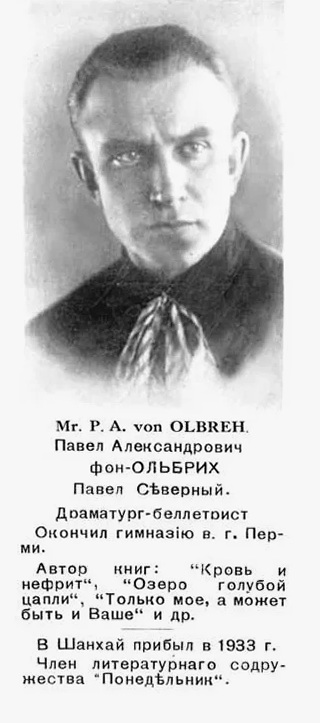 Потом был плен у большевиков, побег, тяжелый тиф… Он выжил. Через все прошел этот несгибаемый человек. А было ему тогда едва 22 года от роду. Добрался до Харбина. В те времена в нем было едва ли не больше русских, чем китайцев. Крестом на плечи легло известие о гибели святой царской семьи. Здесь, в Харбине, Павел фон Ольбрих становится писателем Павлом Северным. Здесь появляются первые его произведения: пьеса «Смерть императора Николая II» 1922 г., выходит сборник рассказов «Только мое, а, может быть и ваше».