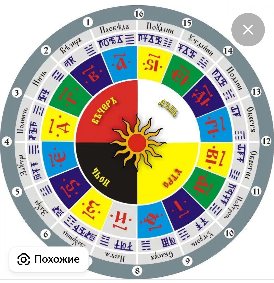 (таблица примерная, т.к. фактически часы смещены в соответствии с Круголетом)