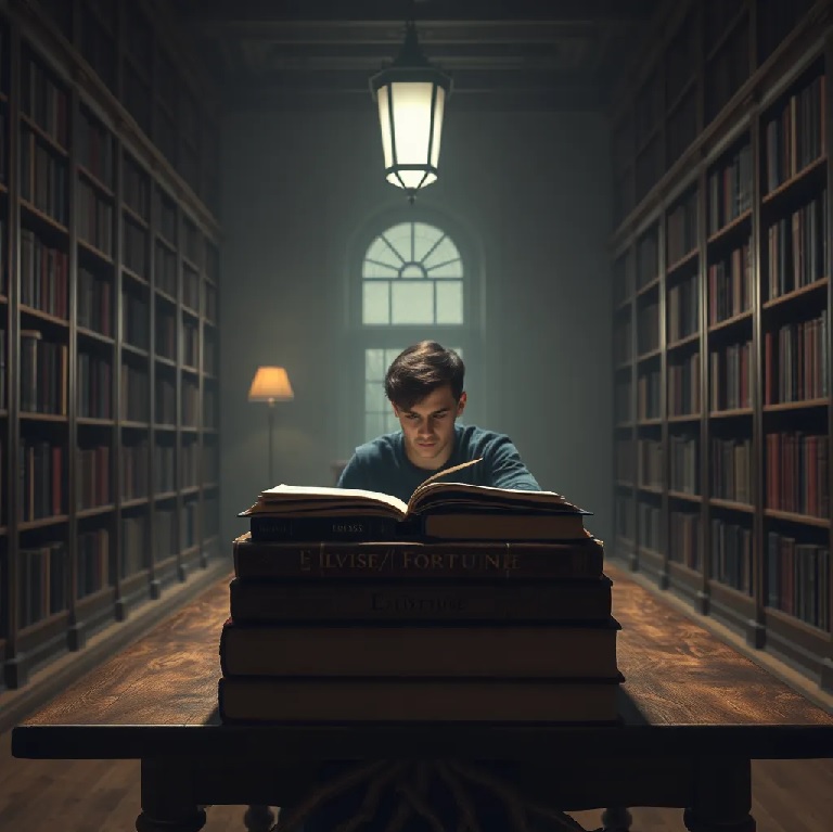 Внутри библиотека пульсировала тишиной, нарушаемой лишь тихим потрескиванием старинных ламп. Запах старой бумаги и пыли витал в воздухе, смешиваясь с чем-то неуловимым, почти магическим. Бесконечные ряды полок тянулись вдаль, уходя в темноту.