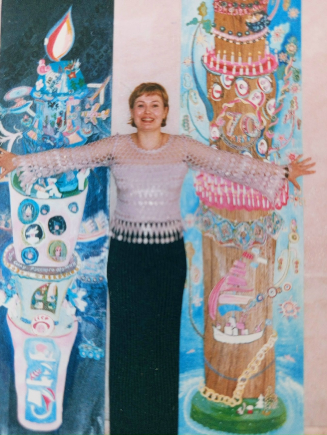 А на фотографии - Елена Васильевна на фоне моих картин ...