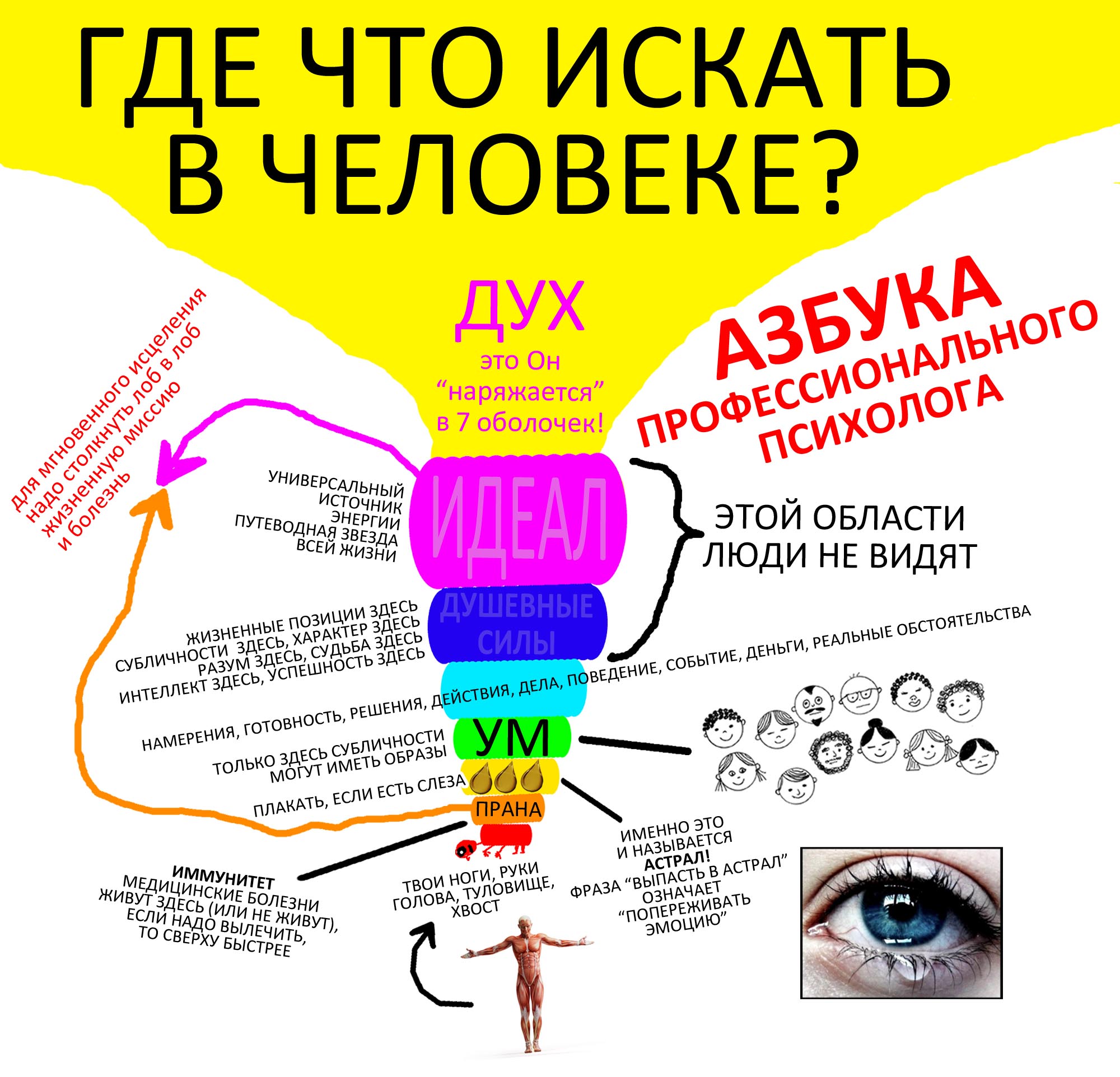 В нижеследующем тексте автор будет придерживаться стремления как можно меньшим количеством слов изложить базовые основы психологии, т.е. материал, который обязан глубоко изучить ЛЮБОЙ ПСИХОЛОГ – и без такого изучения психика ему не откроется! Разумеется, описание предельно краткое и беглое, за полноценным знанием следует обращаться к учебникам (в основном, авторства Авессалома Подводного, но не только). Профессиональная психология на архетипах, любительская на образах – указал нам Авессалом Подводный, под этими словами автор всецело подписывается, им аплодирует. Все психологические проблемы решаются перекомпоновкой энергопотоков внутри организма и ремонтом энергоструктур. Скорости профессиональной психологии, основанной на градациях архетипов (на модальностях), очень высоки, а качество лучше, экологичность грандиозна: как словно вмешательства в психику вообще не происходит, клиент не замечает вмешательства, что вообще что-то произошло – при этом полноценно трансформируется, не меньше, чем от «психолитической терапии» Грофа или у Тимоти Лири, при этом ТРАНСФОРМИРУЯСЬ КОНТРОЛИРУЕМО И В НУЖНУЮ СТРОНУ, оставаясь при этом в сознании (вне выпадения на сутки в особенный переживательный психолитический трип), чаще всего переживая блаженство от приходящих одного за другим крупных откровений. Цифровым полимодальным подходом ВСЕ психологические проблемы решаются за 1 раз (за одно взаимодействие от 1 час до 1 светового дня). Психиатрические и медицинские запросы могут потребовать больше времени за счёт