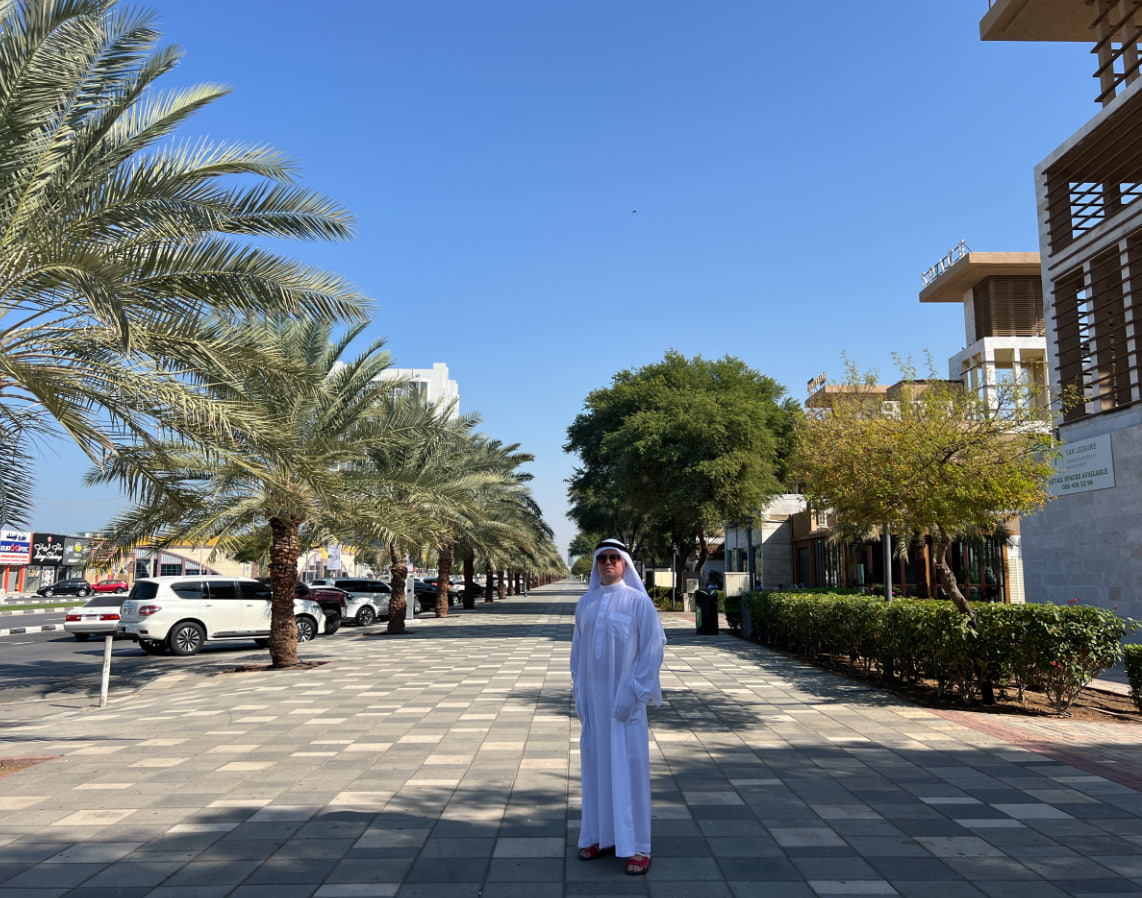 И вот я, «звезда», в традиционном арабском наряде, дефилирую по шикарной набережной Рас-эль-Хайма, а супруга, как мотылёк, кружила вокруг со вспышкой фотоаппарата, ловя каждый момент этого импровизированного фотосета — чтобы зафиксировать на долгую память и передать вам атмосферу происходящей суеты-красоты в этом маленьком, но таком уютном, чистом, гостеприимном и заботливом эмирате.
