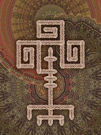 По мотивам этнических изображений создан образ Мирового Древа. В сакральном Древе можно найти понимание жизни, благополучия и вечности. В его форме видна Природная изначальность.