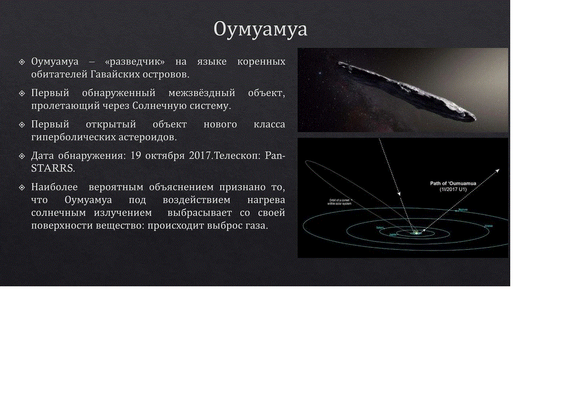 То есть Первый посланец - 1I/Оумуамуа не был понятной для всех "кометой", так как не понять за счет каких физических сил он предал себе ускорение, если не было испарения газов с его поверхности?