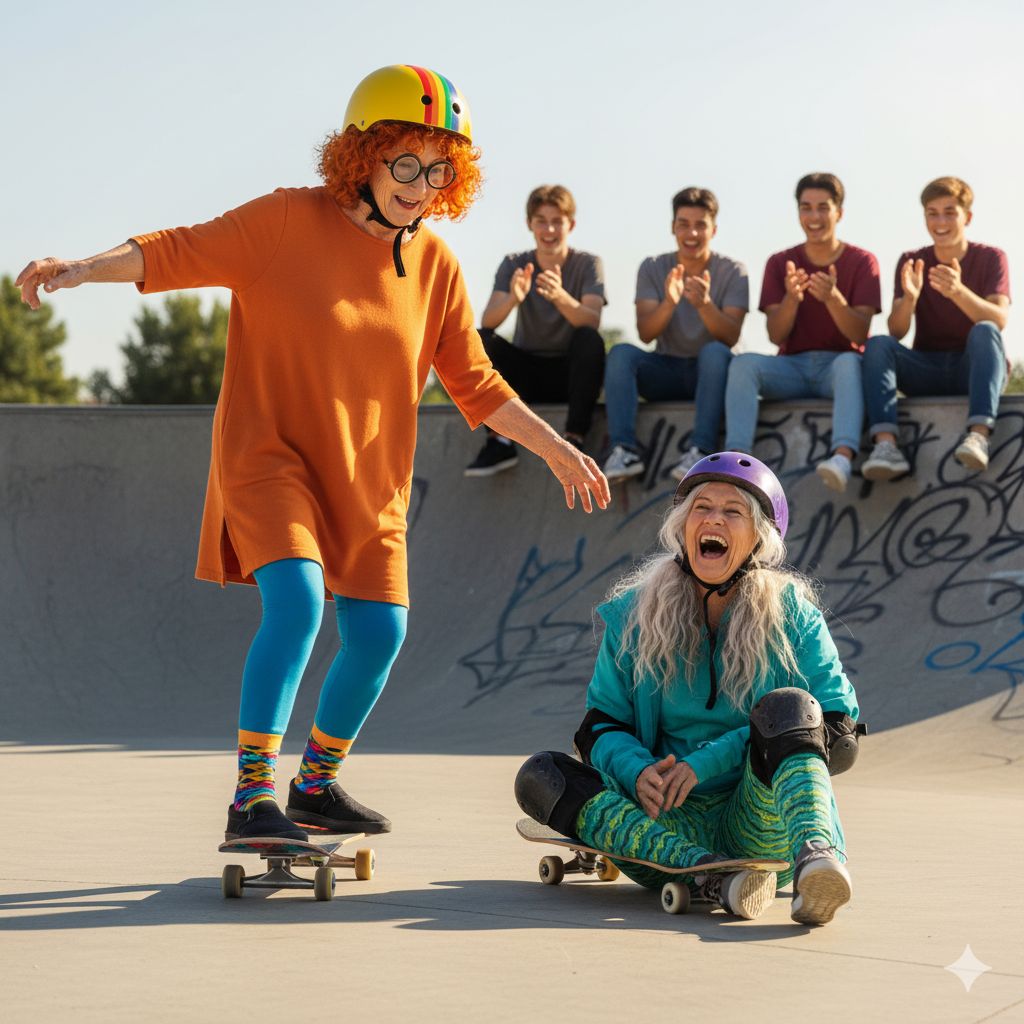 - Конечно, Ника. Феи на пенсии, звёзды парка, скейтбордистки — кто знает, что мы придумаем завтра? — ответила Валентина, подмигивая. И их громкий, заразительный смех вновь наполнил аллею тёплым и живым звуком.