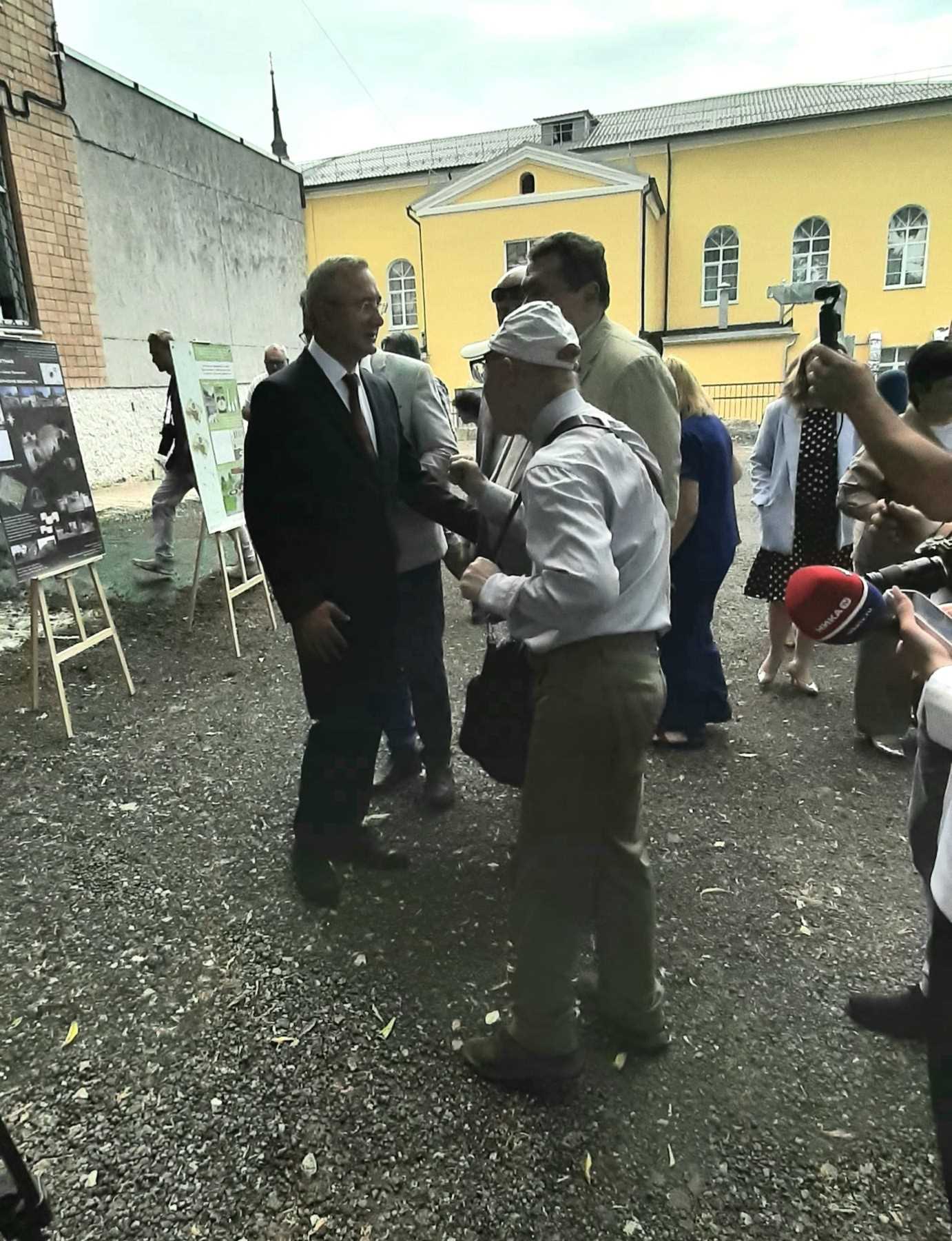 Фотография из личного архива: Калуга. Дом печати. Сергей Шарабин разговаривает с губернатором Калужской области Владиславом Валерьевичем Шапшой на открытие Сквера журналистов. Фото Натальи Мешковой. 31.07.2025 г.