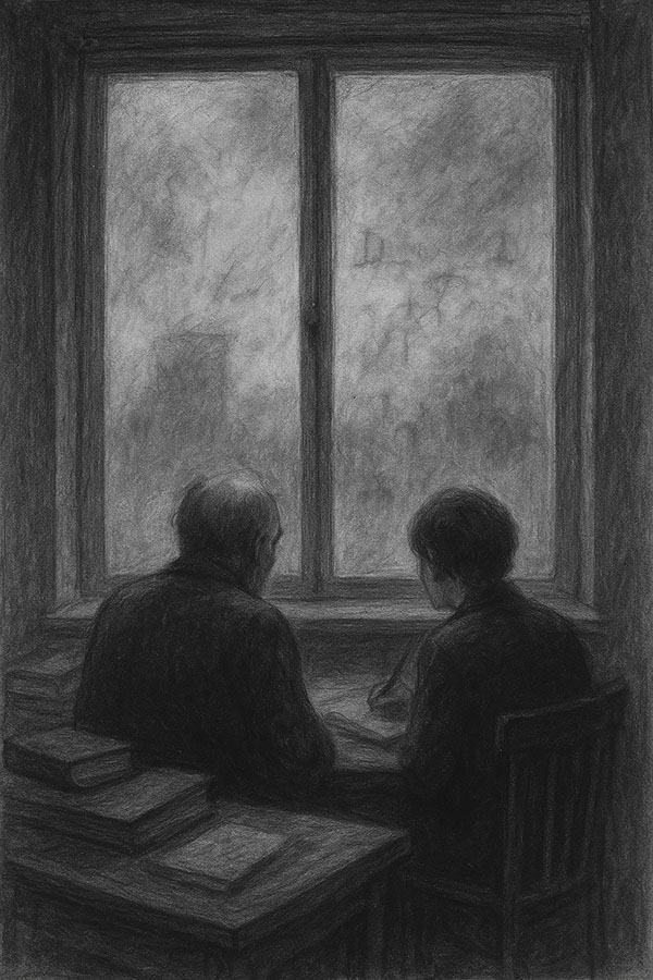 Иван смотрел в туман. Ему казалось, если отстраниться ещё на шаг, можно увидеть и себя, и Алексея, и весь этот разговор — как точки в графике чужого доказательства. От этой мысли становилось так же сыро и холодно, как от проникающей в форточку осенней мороси.