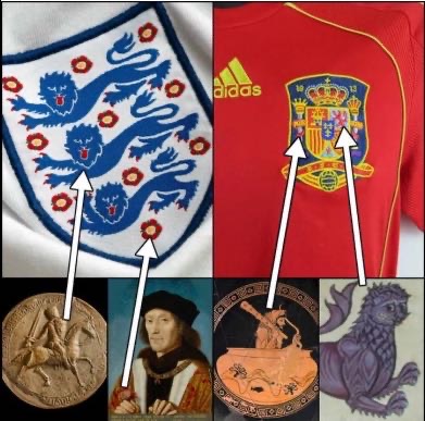 Символы, в частности, имеют богатую историю, и через самые простые вещи — два футбольных значка — разворачивается невероятная история, ведущая нас из 21-го века обратно в Средневековье и дальше.