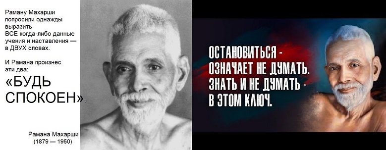 Рамана Махарши также вёл и к безМыслию. Мы же считаем, что это прямой путь к дебилизму.