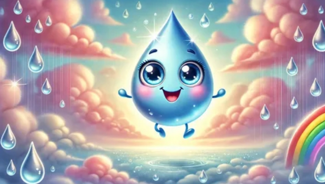 Малыши превратились в пар, поднялись в небо и присоединились к большому облаку. Капельки росли и облако постепенно превратилось в тучу.