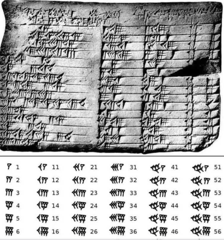 В отличие от современной десятичной системы счисления, вавилоняне использовали 60-ричную систему счисления, которая сегодня отражена в наших 60 секундах в минуте, 60 минутах в часе и 360 градусах в окружности.