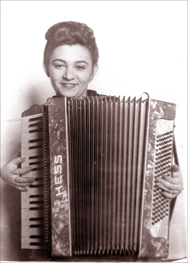 Ещё помню, как зажигательно она играла "Цыганочку", лихо ударяя по клавишам нашего старенького пианино. Мама хорошо играла и на аккордеоне. У её родителей был большой, сверкающий перламутром красный аккордеон. Не знаю, где и у кого мама научилась на нём играть. Но играла с большим подъёмом и удовольствием. Сохранился её портрет с аккордионом. Мама небольшого роста и за аккордеоном её почти не видно.