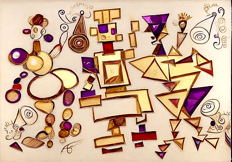 1 Изображение «Три грации - вариации 2» Генерации с использованием Artificial Intelligence (искусственного разведывания - интеллидженс) artguru.ai по словесному описанию и загруженному изображению. Исходное изображение выполнено мной "Три грации- круглая, квадратная и треугольная"