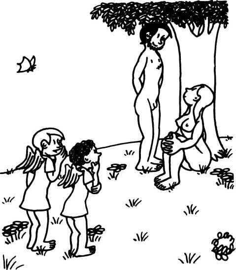 Автор рисунка и реплики ангелочка - Жан Эффель (из книги "Сотворение человека")