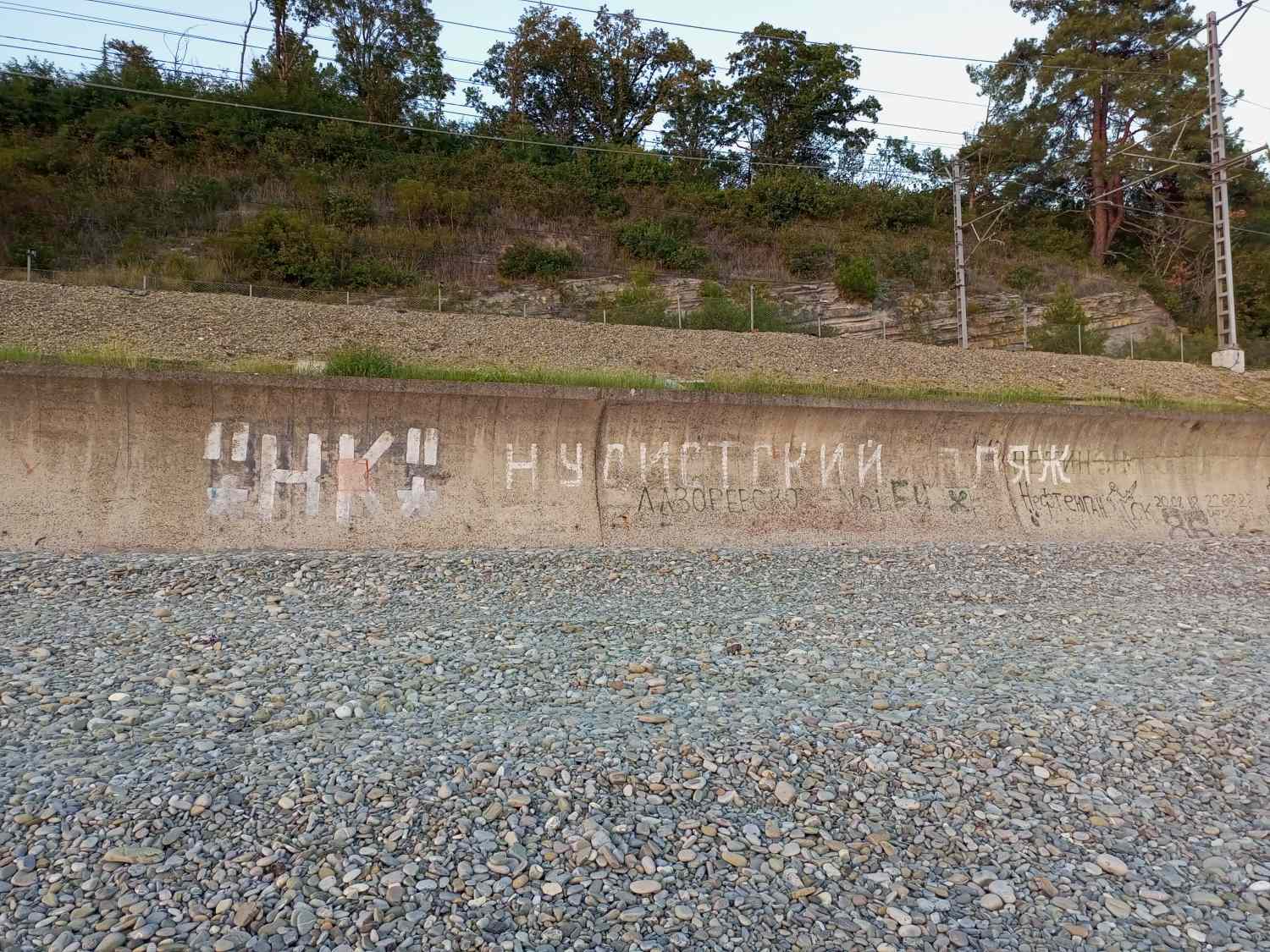 -У бетонной стены ограждения железной дороги стояли 2 палатки, а у мангала копошились двое мужчин, голых, но в фартуках. И эти обыденные слова, как-то успокоили нас и вкупе с южным воздухом и шумящим морем – нам стало спокойно и действительно захотелось остаться. И я, не дожидаясь ответа жены, вдруг сказал: