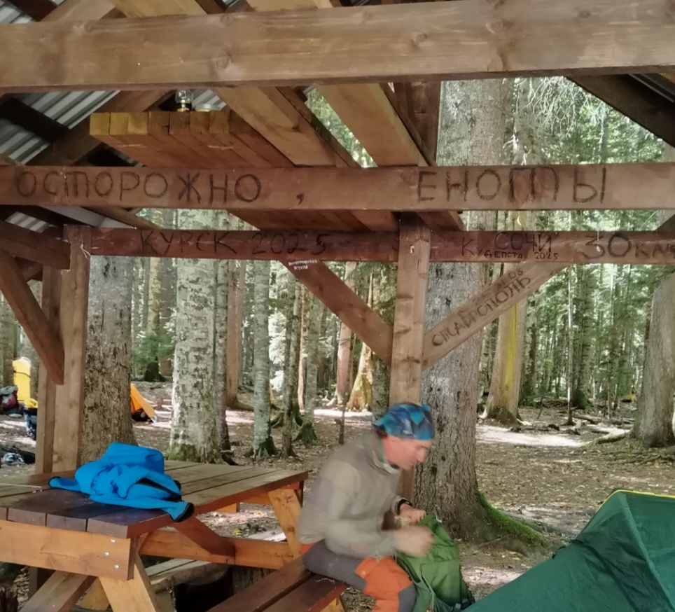 - Хотел рассказать тебе про импровизированную баня, которую мы устроили на берегу горной речки, но вспомнил про надпись в одной из беседок нашего лагеря: «Осторожно еноты».