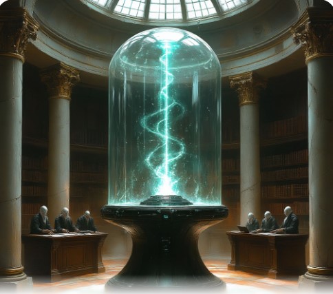 Они были доставлены в смежное помещение — лабораторию. В центре, под куполом из бронированного стекла, на массивном постаменте лежал тот самый артефакт. Он был похож на гибрид древнего камня с плазмогенератором. От него исходило низкочастотное гудение, от которого вибрировали кости и сбивался ритм сердца.