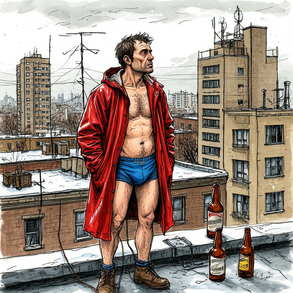 На крышу пошел он в плаще и трусах