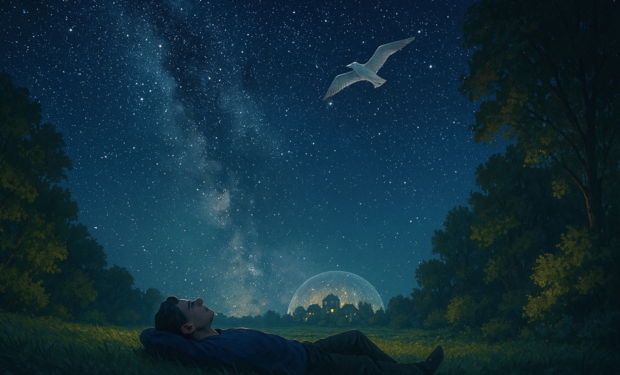 Первое, что удивляет людей, когда они оказываются за городом, — это небо. Во-первых, оно, скажем так, всегда не в том времени. По вашим расчётам вы должны были достичь цели к вечеру, а оказались в палатке в полдень. И здесь нет никаких чудес — в городе сутки длятся двадцать астрономических часов. Нет-нет, на часах всё как надо — двадцать четыре. Но час в городе меньше, чем час за городом. Вот и всё. Зачем? Кто-то решил, что при таком раскладе выше продуктивность… Кстати, значит, и лет вам несколько меньше, чем вы считаете.