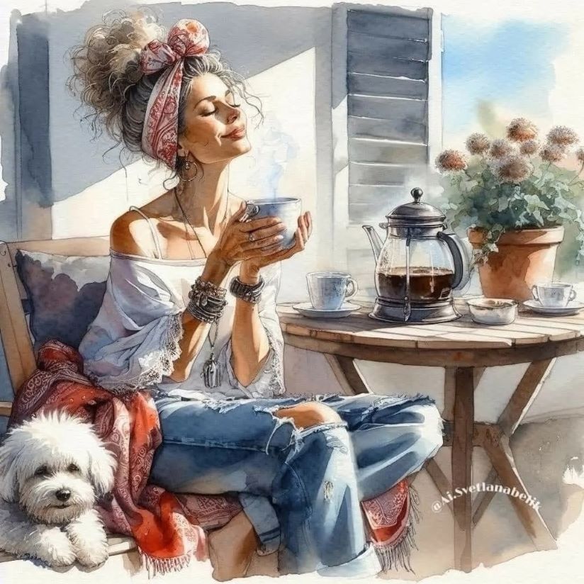 Пригревает солнышко. Мы сидим, расслабились...