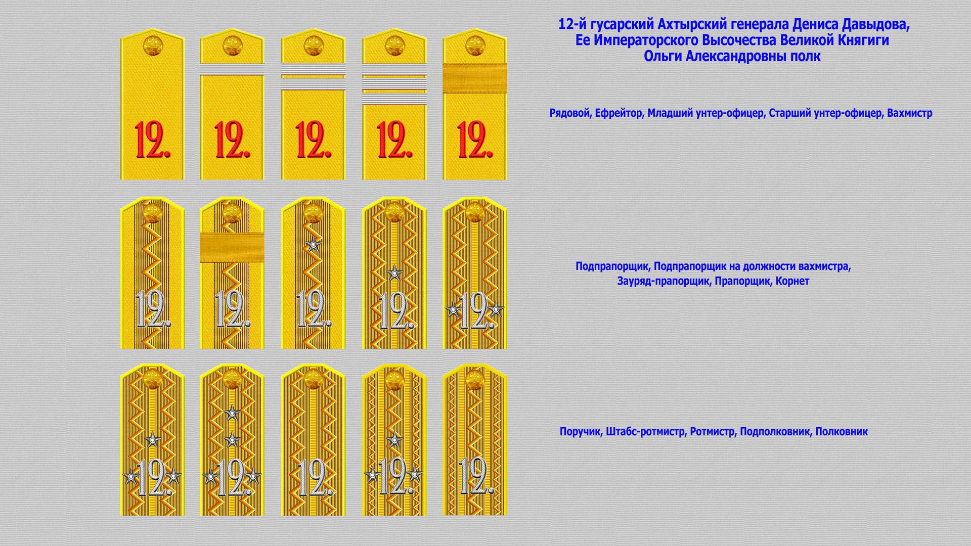 12-й гусарский Ахтырский генерала Дениса Давыдова Ее Императорского Высочества Великой Княгини Ольги Александровны полк