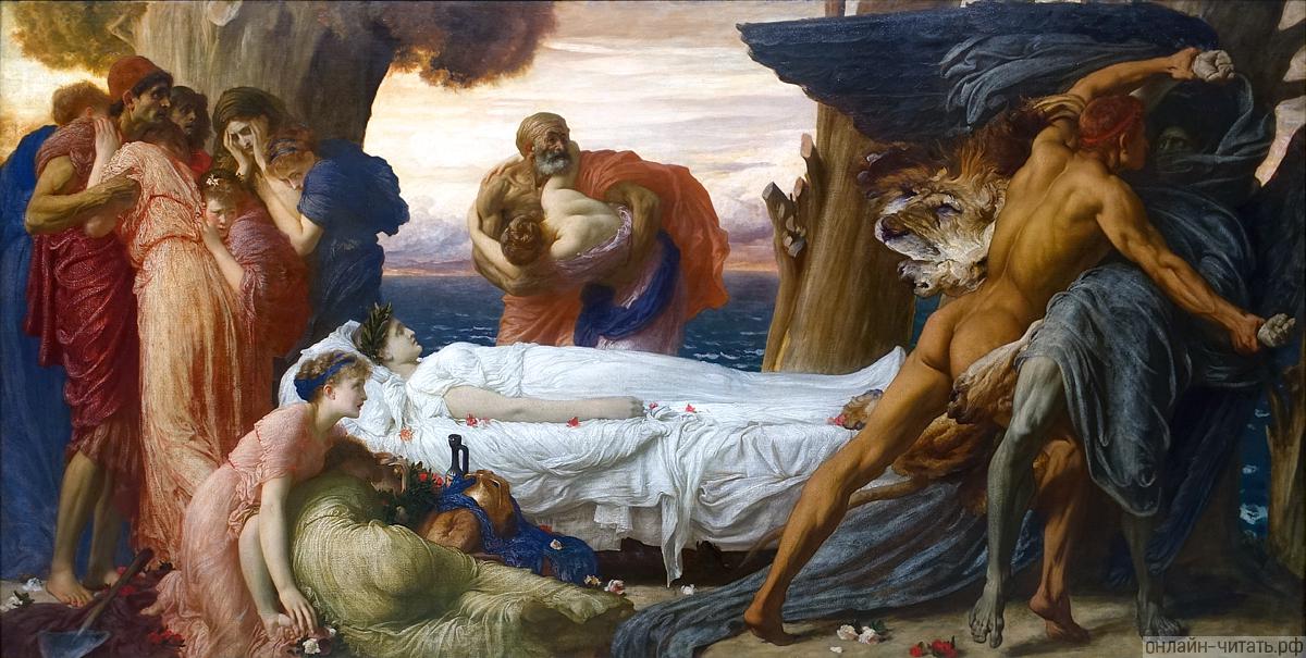Фредерик Лейтон. Геракл борется со смертью за тело Алкестиды. Около 1870 года
