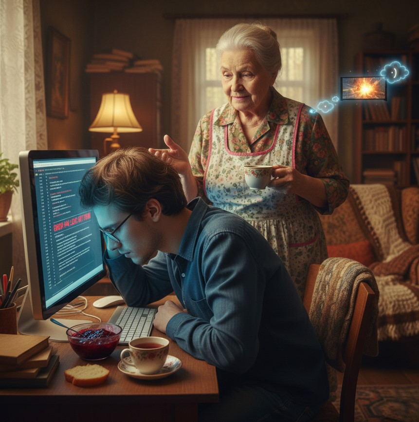 И тогда Митя понял. Бабушкин алгоритм — это не просто набор действий. Это самый гениальный отладчик, который он когда-либо встречал. Ведь иногда, чтобы решить сложную проблему, нужно просто отключить мозг, выпить чайку с вишнёвым вареньем и пойти в кино.