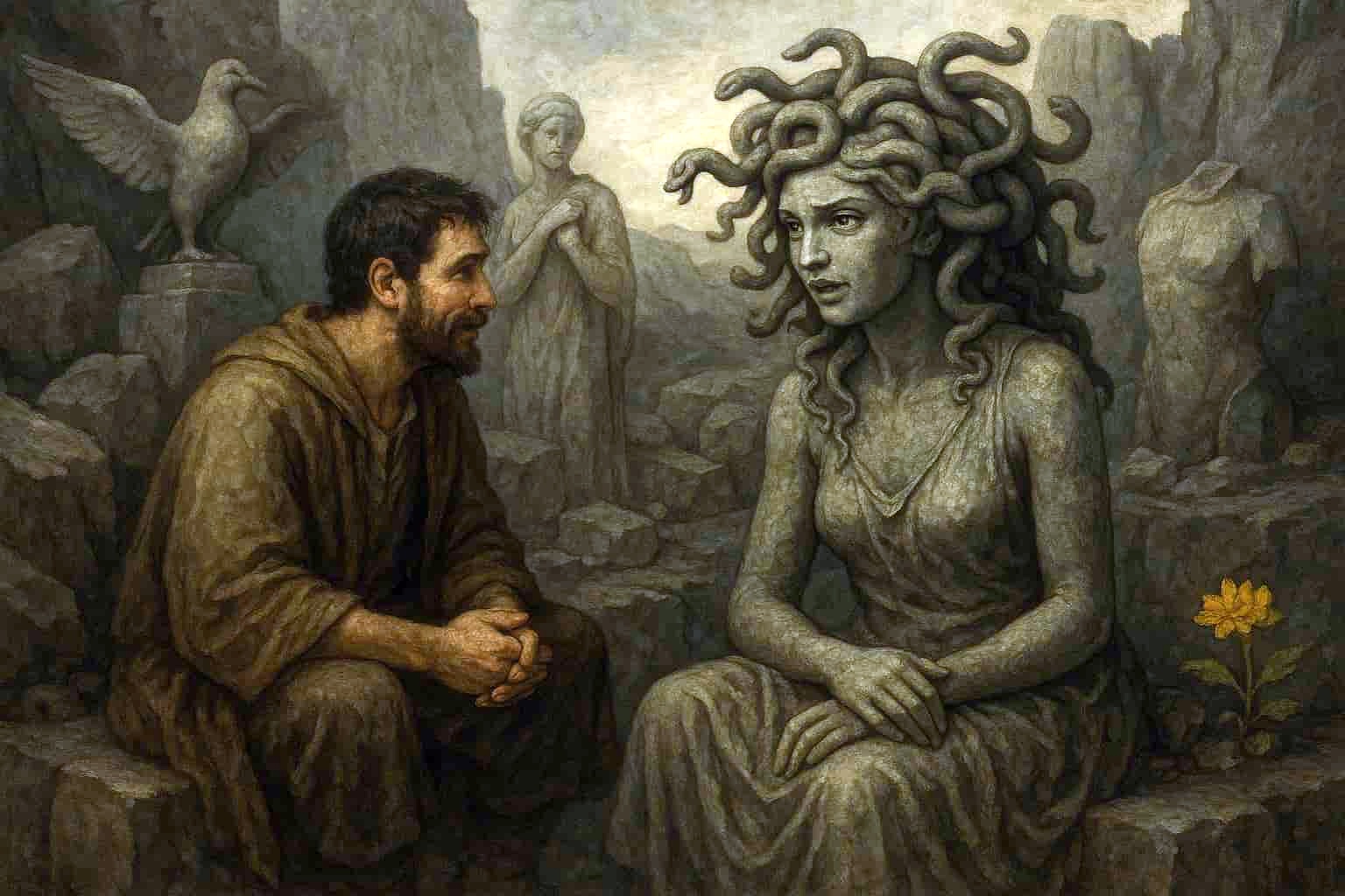 Это был первый человек, которого она не превратила в камень. И первый, кто не сбежал. Он сел рядом и не молчал, а говорил...