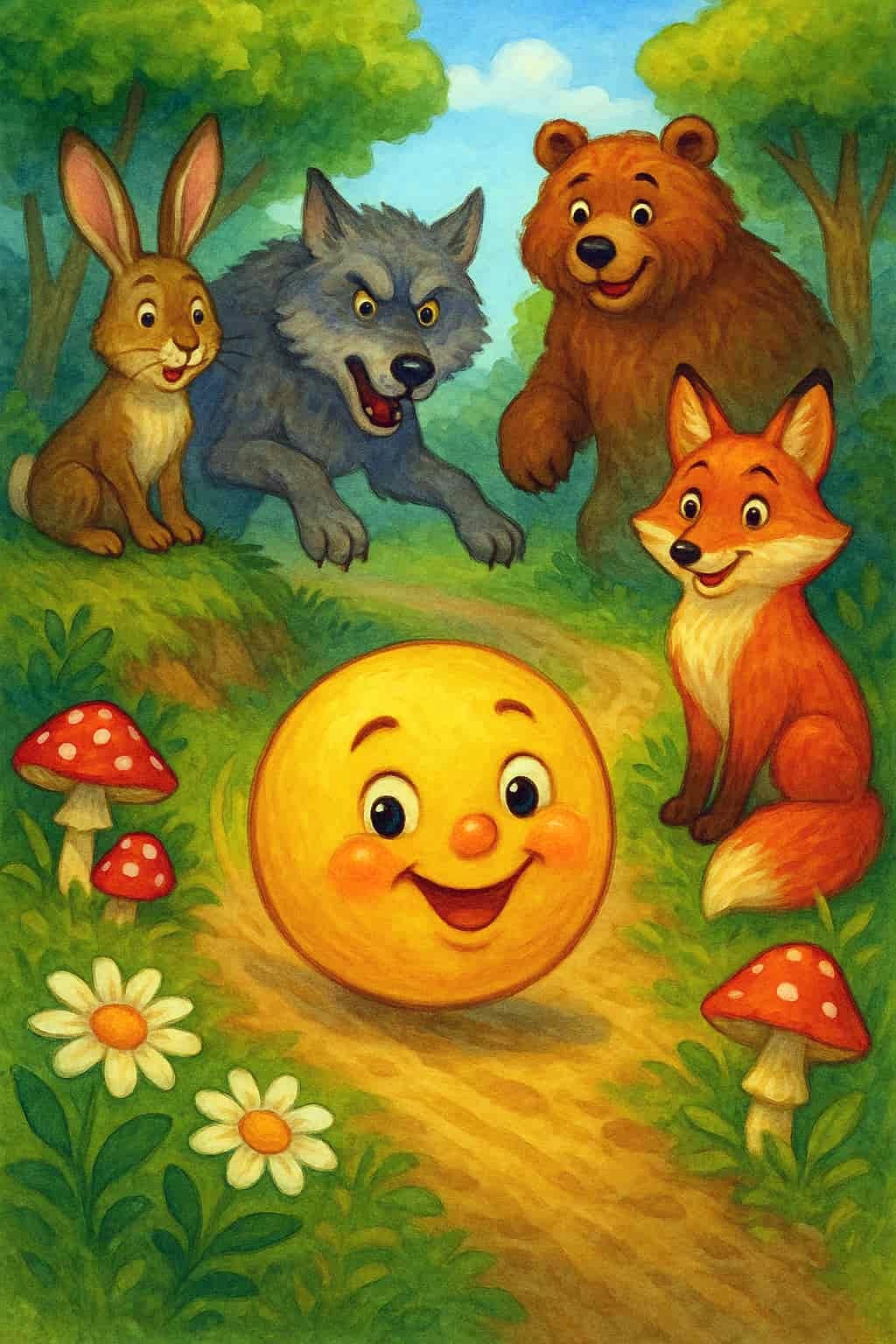 Но однажды Колобок понял: дело не в том, что кто-то его съест, а в том, что он сам себе не даёт быть настоящим — со всеми трещинками и подрумяненной корочкой. Тогда он остановился — не у лисы, не у волка, не у зайца, не у медведя, а в себе.