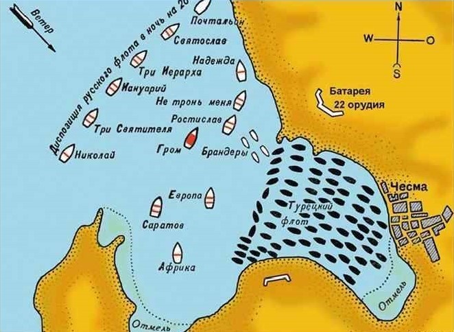 - Сейчас сами увидите… Накануне был небольшой бой в Хиосском проливе, в котором русские применили новую тактику и потопили турецкий флагман. От такой неожиданности турки растерялись и укрылись под огнем своих береговых батарей в Чесменской бухте. Атаковать их сейчас стало совершенно невозможно. Командующий турецким флотом Гассан-паша считал, что перехитрил русских. Недаром в Турции его называли «крокодилом морских сражений».