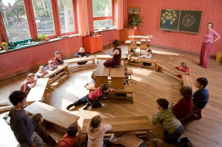 Группы в вальдорфской школе разновозрастные, дети находятся в комфортной обстановке, похожей на семейную.