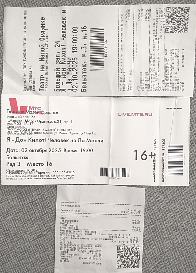 Билет в театр на Малой Ордынке, 2 октября 2025 года