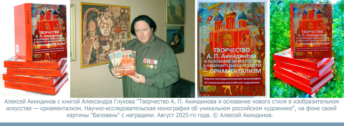 36. Глухов А. В. Творчество А. П. Акиндинова и основание нового стиля в изобразительном искусстве — орнаментализм. Научно-исследовательская монография об уникальном российском художнике. — Екатеринбург: Издательские решения, 2025. — 306 с.