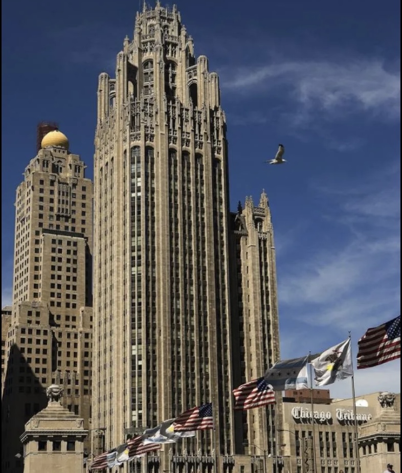 Отсюда нечто вроде неоготической башни Трибьюн в Чикаго, построенной в 1923 году.