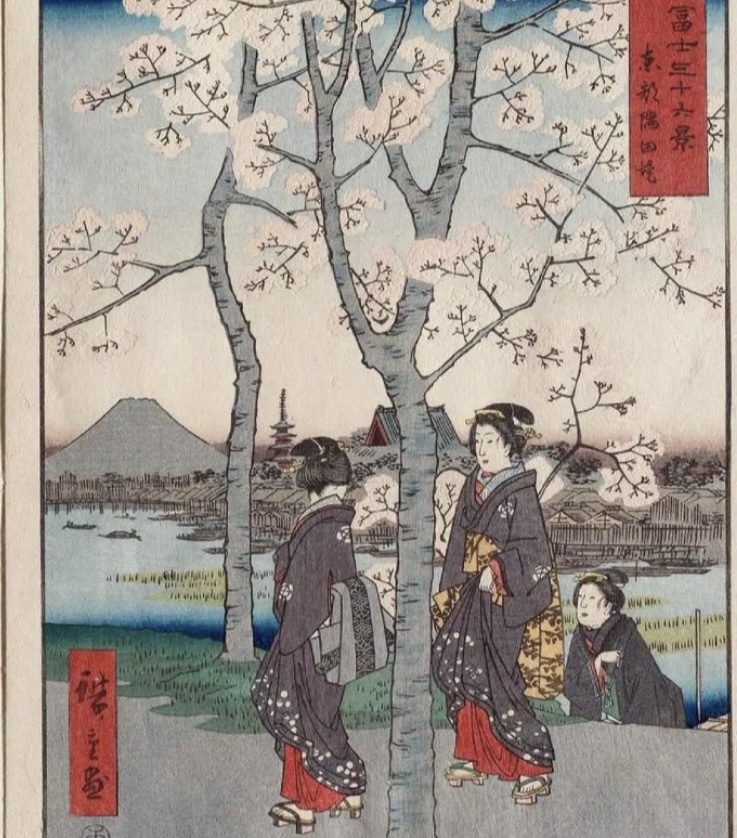 Удивительной особенностью изображения ханами в японском искусстве является то, что акцент всегда делается на людях — наблюдателях, а не на самом цветении сакуры.