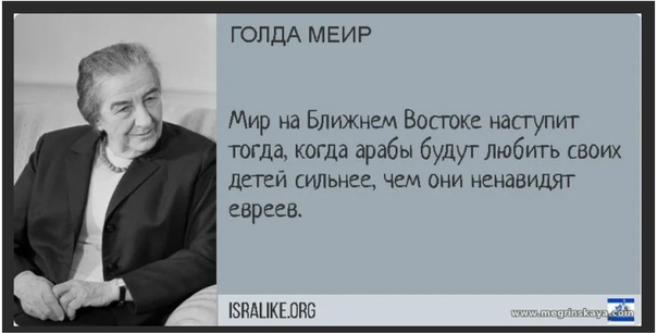 ;; Мир на Ближнем Востоке наступит тогда, когда арабы будут любить своих детей сильнее, чем они ненавидят евреев.