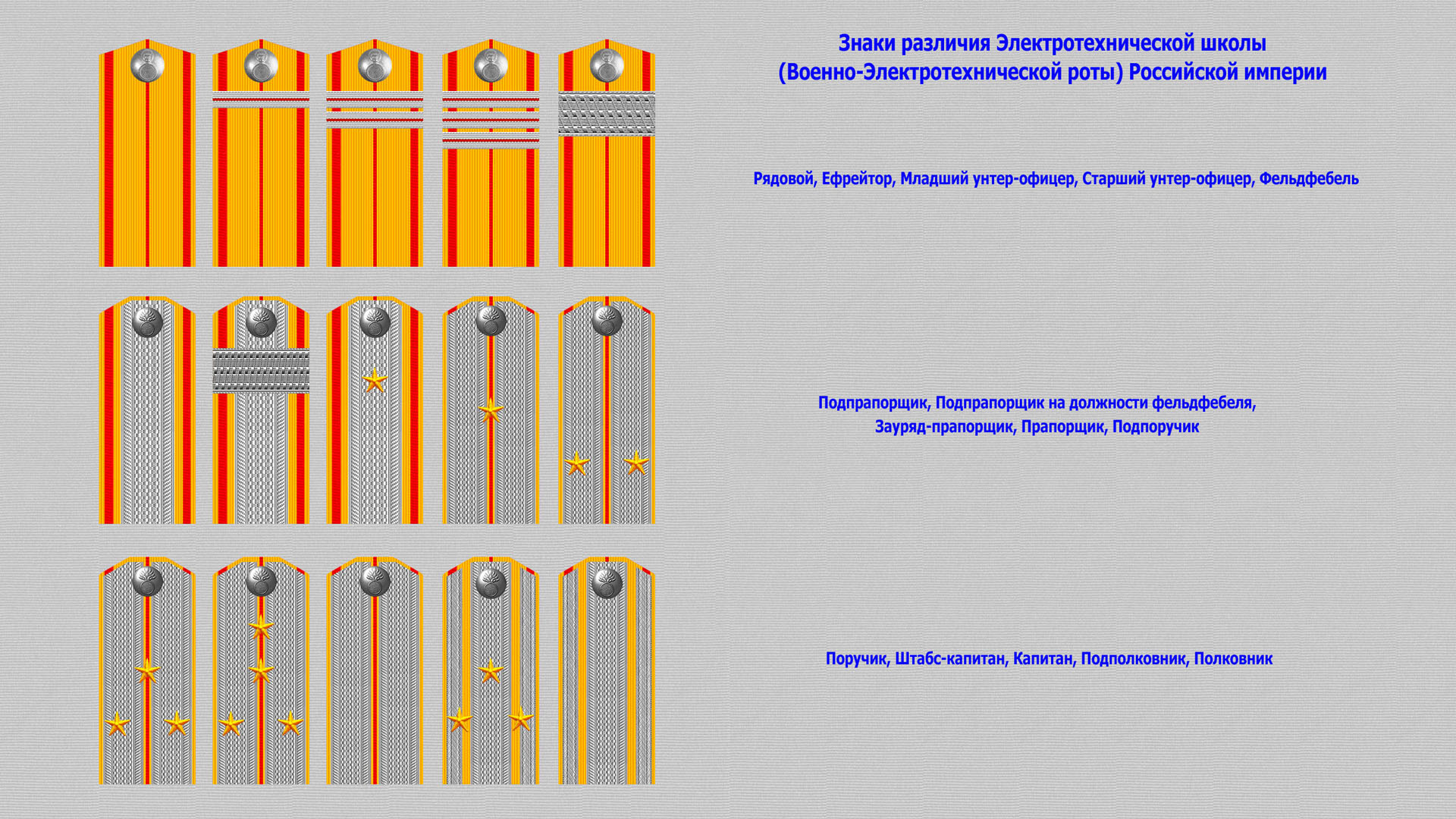 Знаки различия Электротехнической школы (Военно-Электротехнической роты) Российской империи