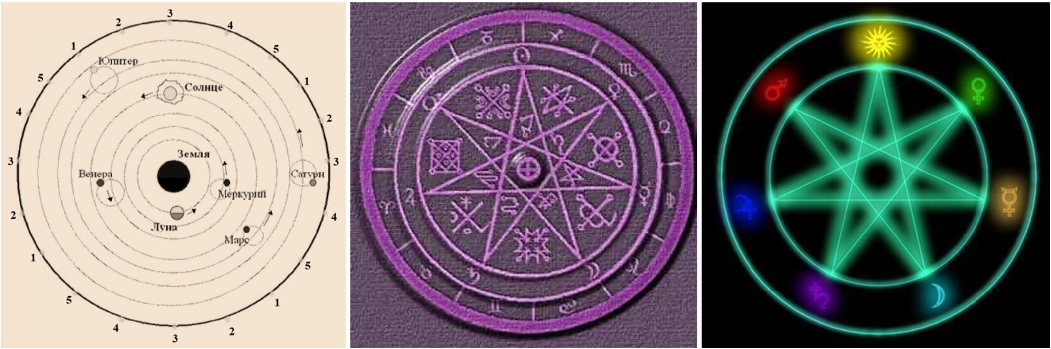 Это последовательность видимых невооружённым глазом небесных тел геоцентрической системы, расставленных по возрастанию средней скорости видимого движения относительно небесных тел: 1/Сатурн, 2/Юпитер, 3/Марс, 4/Солнце, 5/Венера, 6/Меркурий, 7/Луна || 8/Земля = ядро системы, 9/Звезды = оболочка системы, область бесконечных объектов. В европейскую культуру халдейский ряд проник из Месопотамии, где применялся в астрологии и использовался для порядка в названиях дней недели.