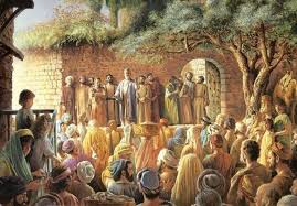 Как только фарисеи замолчали, к Нему подступили саддукеи со своими коварными вопросами. Эти две партии иудеев ожесточенно враждовали между собой. Фарисеи строго придерживались преданий. Они скрупулезно выполняли все обряды, тщательно совершали омовения, соблюдали посты и долго молились. Они также любили подавать милостыню на глазах у народа. Но Христос сказал, что они, упразднив Закон Божий, учили учениям и заповедям человеческим. В основном все фарисеи были фанатиками и лицемерами, но среди них встречались люди подлинно благочестивые, которые приняли учение Христа, стали Его учениками. Саддукеи отвергали предания фарисеев. Они утверждали, что веруют в большую часть Писания и руководствуются им в своих действиях, но в на самом деле были скептиками и материалистами.