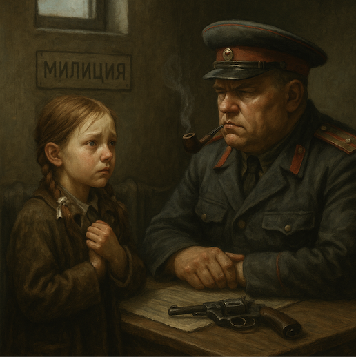 Внутри пахло формалином, мокрым сукном и чернилами. В углу потрескивала железная батарея, от которой толку было чуть больше, чем от теплого слова. За столом, покрытым полосатым брезентом, сидел дежурный сержант - массивный, скуластый, с широкими пальцами и крепким подбородком. Он курил, положив руку на полуразобранный наган, и, казалось, никуда не спешил. Ему здесь было тепло, и этого ему хватало.