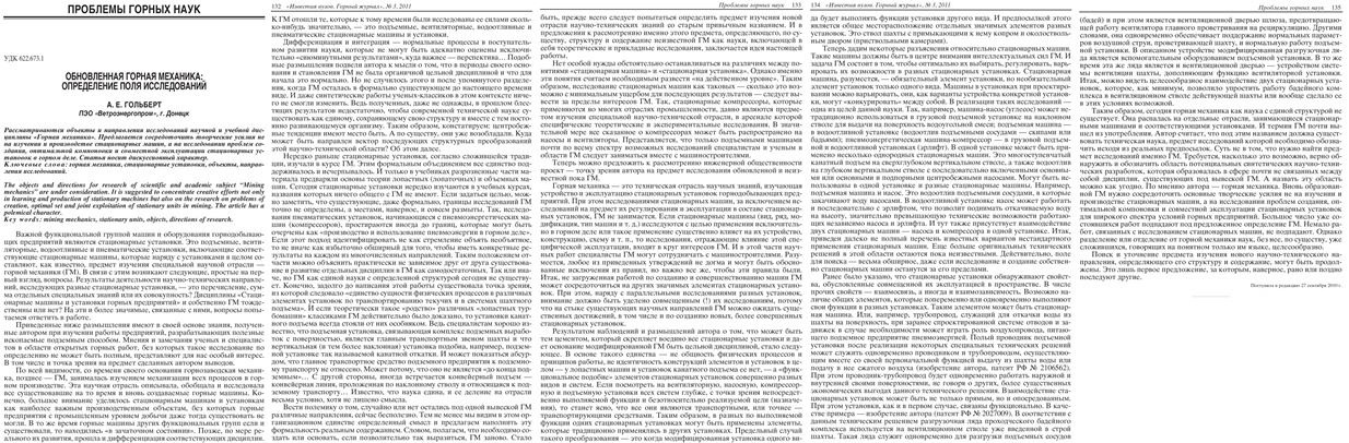 Izvestiia vysshikh uchebnykh zavedenii. Gornyi zhurnal, 2011, No.3
