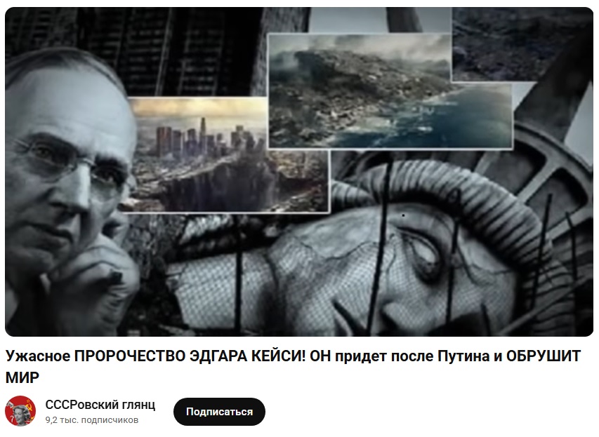 Эдгар Кейси предсказал (от 30:40), что весной 2026 г. произойдёт создание нового СССРа. Сейчас в это абсолютно не верится. Но нам также не верилось и в то, что СССР в 1991 г. так быстро распадётся.