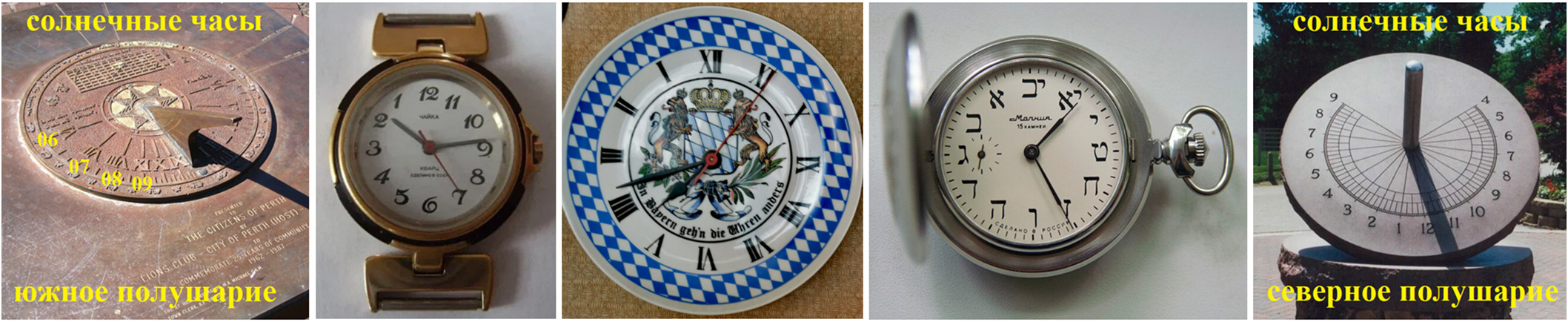 7) часы с обратным ходом в северном полушарии, это еврейский вариант часов