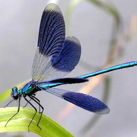 Отличить её от других стрекоз очень просто. Она окрашена в красивый бирюзово - голубой цвет. Даже прозрачные крылышки имеют голубоватый отлив. А сама она совсем небольшого размера. Любит жить возле водоёмов. Потому что все стрекозы рождаются в воде.