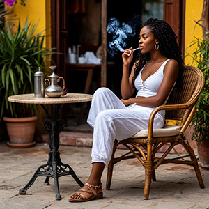 Мы не отказались. Принесли небольшой кальян, пресс-секретарь, положив ногу на ногу, сладко затянулась им, а Марианна закурила сигарету.