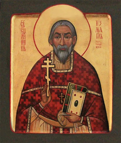Мирскаго мятежа удалився,/ добре Богу послужил еси,/ во дни же гонений на Церковь Русскую/ кровь твою за Христа пролиял еси/ и страданьми твоими землю нашу обагрил еси./ Темже молися, преподобномучениче Исмаиле,/ сохранитися ей в Православии и благочестии/ до скончания века.