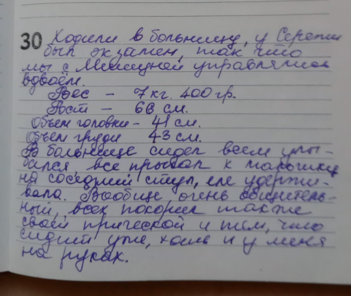 Ходили в больницу, у Серёжи был экзамен, так что мы с Мишутой управлялись вдвоём.
