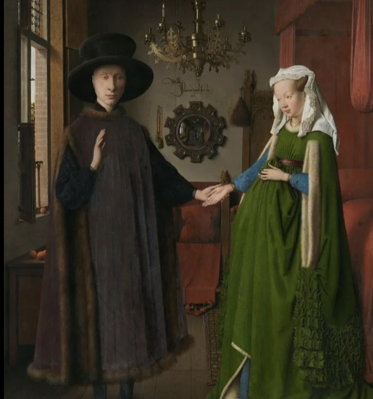 Его самая известная картина была написана в 1434 году для итальянского купца Джованни Арнольфини; на нем изображены он и его жена, имени которой мы доподлинно не знаем.