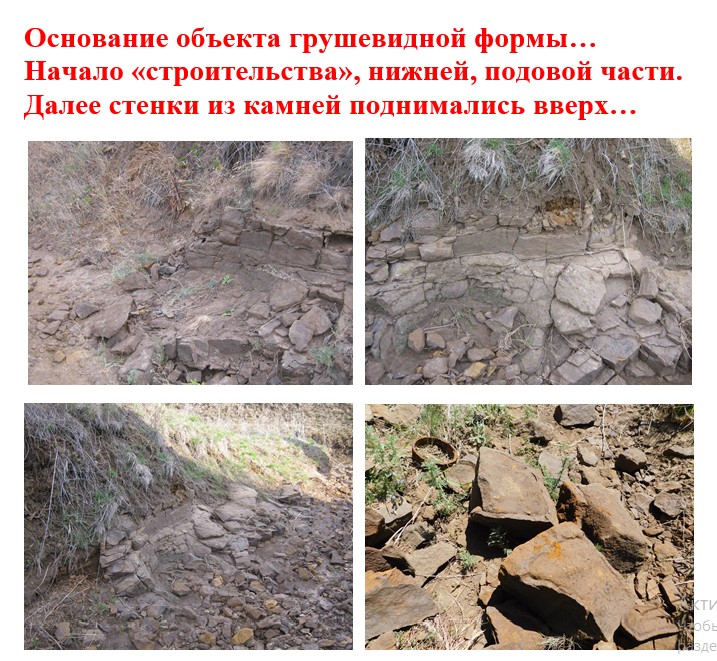 Из камней, часть из которых ты можешь видеть на правом нижнем снимке, аккуратно была выложена и вымощена площадка. Затем ее стенки аккуратно наращивались рядами вверх, как и при обычной строительной кладке. И судя по примеру другого грушевидного объекта, при достижении необходимой высоты, завершение как купол закруглялось.